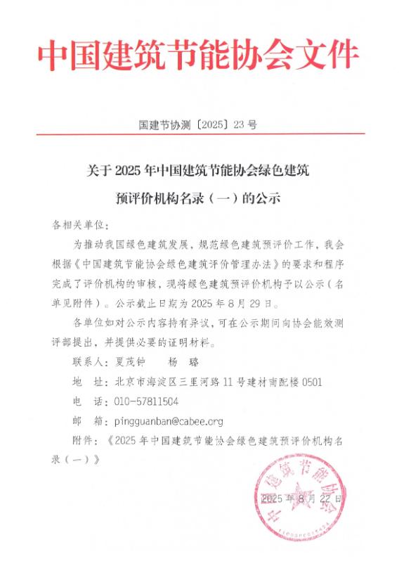 近日,集團(tuán)憑借旗下綠建公司在綠色建筑領(lǐng)域的深厚技術(shù)積累與專業(yè)服務(wù)能力,成功牽頭申報(bào)并獲得中國建筑節(jié)能協(xié)會首批認(rèn)定的“綠色建筑預(yù)評價機(jī)構(gòu)”。